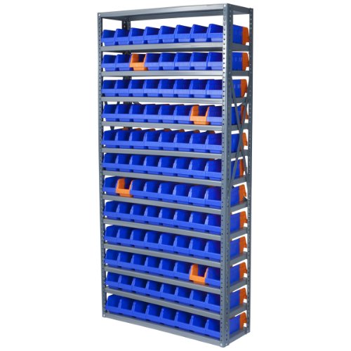 AKRO-MILS AS127936442 12-Inch D by 36-Inch W by 79-Inch H Powder Coated Steel Shelving Unit with 13 Shelves and 96 36442 Indicator Bins, Grey