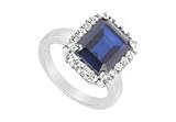 | ✚✚✚ Diffuse Sapphire and Cubic Zirconia Ring : 10K White Gold - 3.50 CT TGW Size 5.5 This ring features a large rectangle shape diffuse sapphire prong-set in the center. A row of eighteen smaller round CZs encircles the center-set stone. Made in 10K white gold this ring has a total gem weight (TGW) of 3.50 carat.