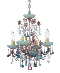 FeaturesHeight 15.00 Inch,Width 13.00 InchFinish: Heirloom Gold,Crystal: Mint JulipLamping: 4 - Candelabra 60 Watt, Lamp Type: IncandescentUL Listing: Dry LocationsConnection: Hardwire Schonbek Worldwide 1424-22MJ 4 Light Rose Chandelier?