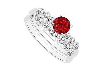 Ruby and Diamond Engagement Ring with Wedding Band Set : 14K White Gold - 0.50 CT TGW Size 13.5
